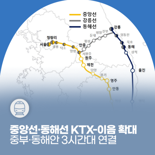 이번 KTX-이음 투입은 중앙선(청량리~부전)과 동해선(강릉~부전) 두 주요 노선에 집중됩니다. 중부 내륙과 동해안 권역의 이동 시간을 획기적으로 단축하여 **'3시간대 이동'**을 가능하게 하는 것이 핵심입니다.